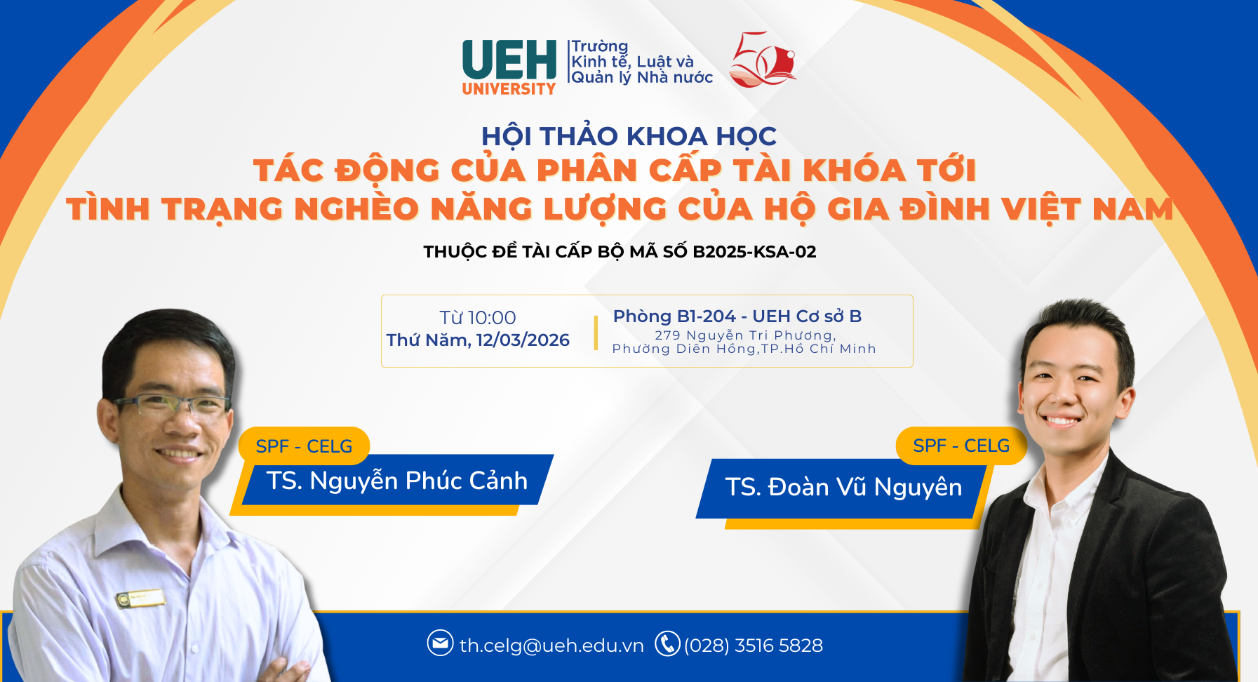 Trường Kinh tế, Luật và Quản lý nhà nước - UEH kính gửi đến quý Thầy/Cô, nghiên cứu sinh và học viên thông tin về Hội thảo khoa học thuộc đề tài cấp bộ mã số B2025-KSA-02 như sau:
